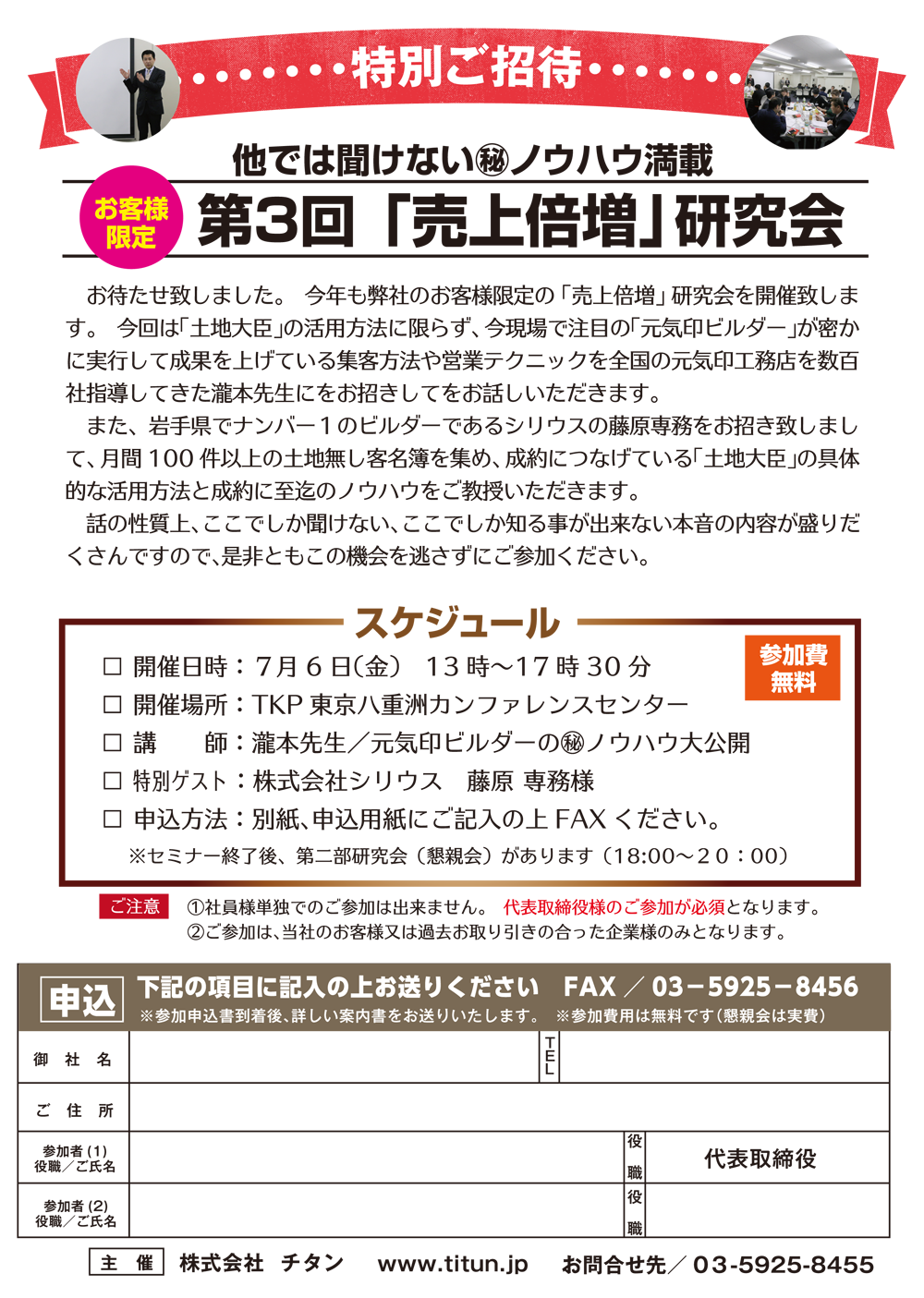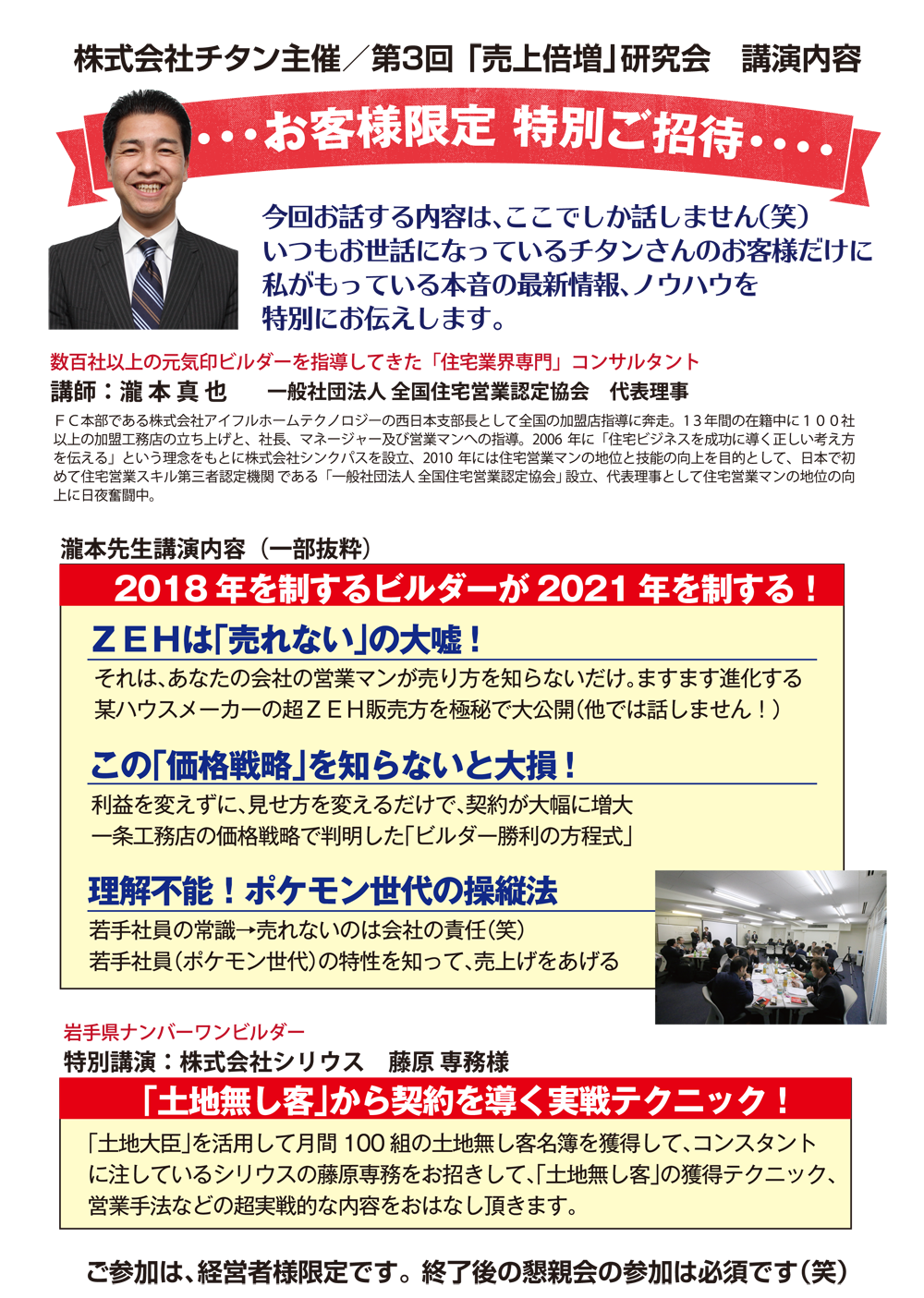 - 他では聞けない㊙ノウハウ満載 お客様限定 第3回「売上倍増」研究会
