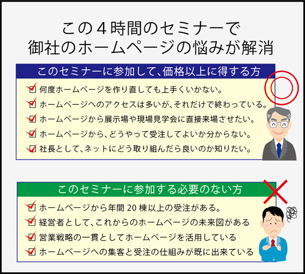- ビルダー社長のための本当に役立つ「ホームぺージ戦略」セミナー