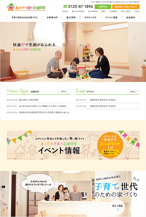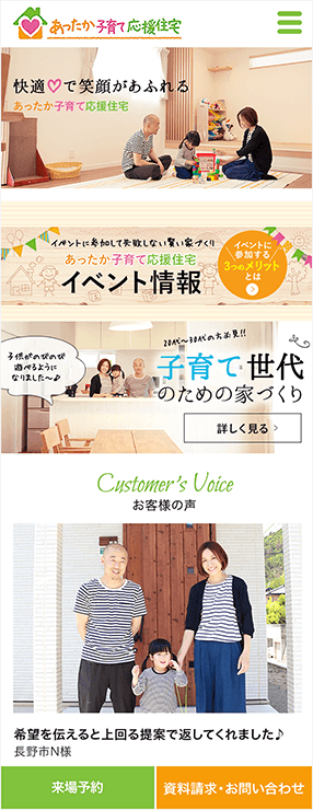 あったか子育て応援住宅という社名から伝わる優しいイメージが伝わるように写真やコピー、デザインを変更いたしました。会社の魅力が伝わるホームページができあがり、「女性が見ても共感できるサイトですね。」とのお言葉を頂きました。また、ホームページからの集客が一気に増えるという結果を出しています。