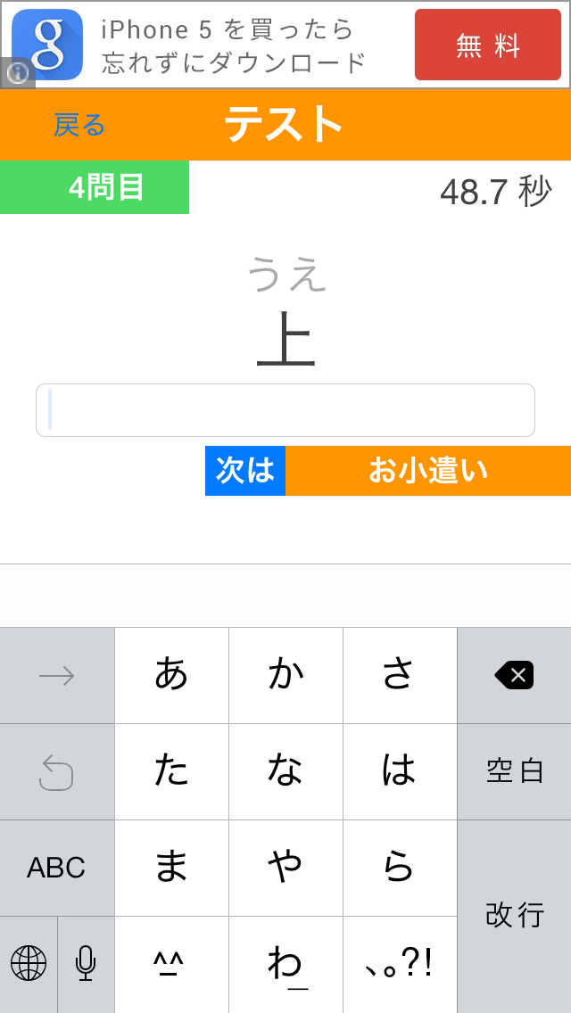 フリック入力の練習をしています。