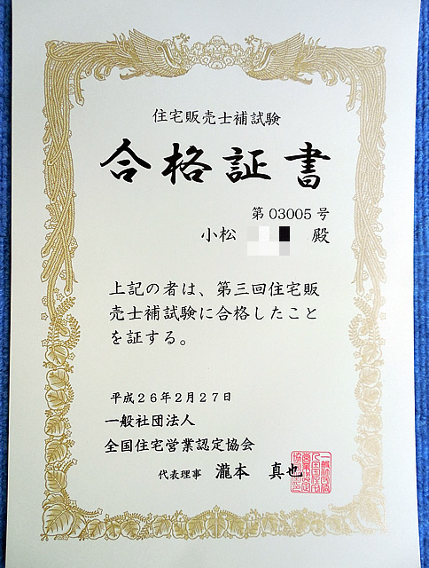 一般社団法人 全国住宅営業認定協会による認定制度になります。