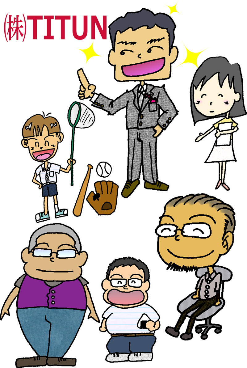 そういえば、弊社チタンのスタッフってどんな人なのかご紹介させてもらってないな・・・と思いまして、イラストを描いてみました。