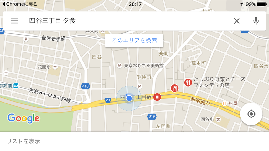 「地域名+ランチ」や「地域名+夕飯」・「地域名+美味しい店」などまず食事に