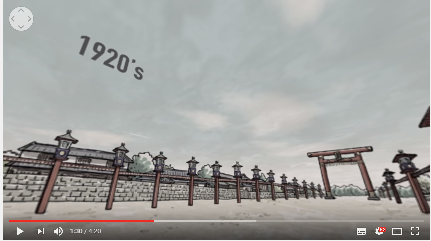 現在のビデオと昔のイメージ画像を併用し、歴史を学ぶことができます。