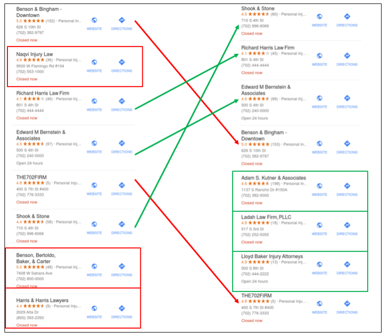 検索結果がどのように変わったかを示しています。(左側が8月31日、右側が9月7日)
