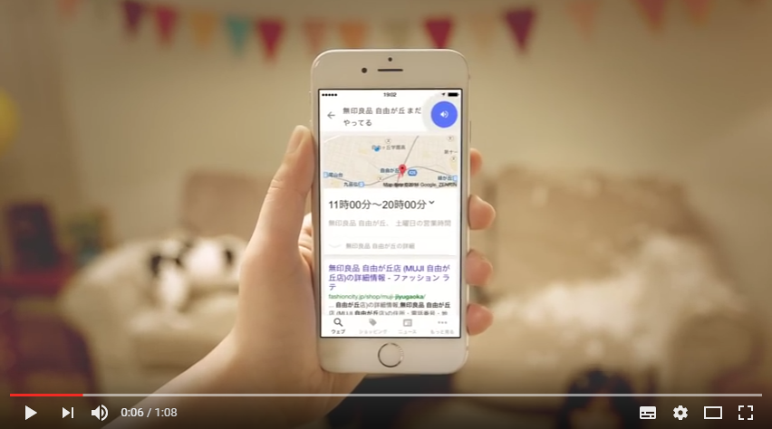 先日、電車内でGoogleのCMをみかけました。スマホで音声検索をして、検索結果が地図で出るという