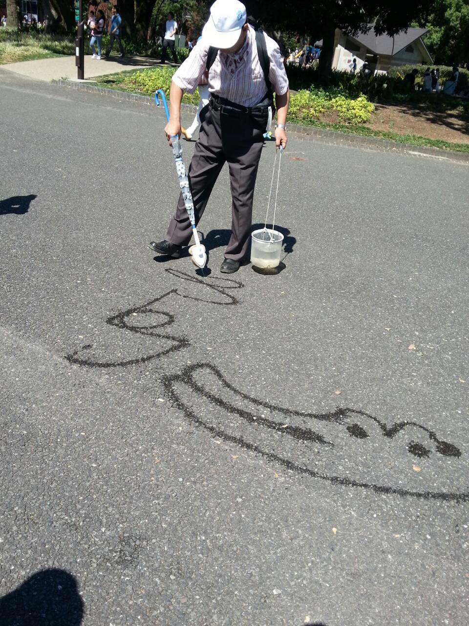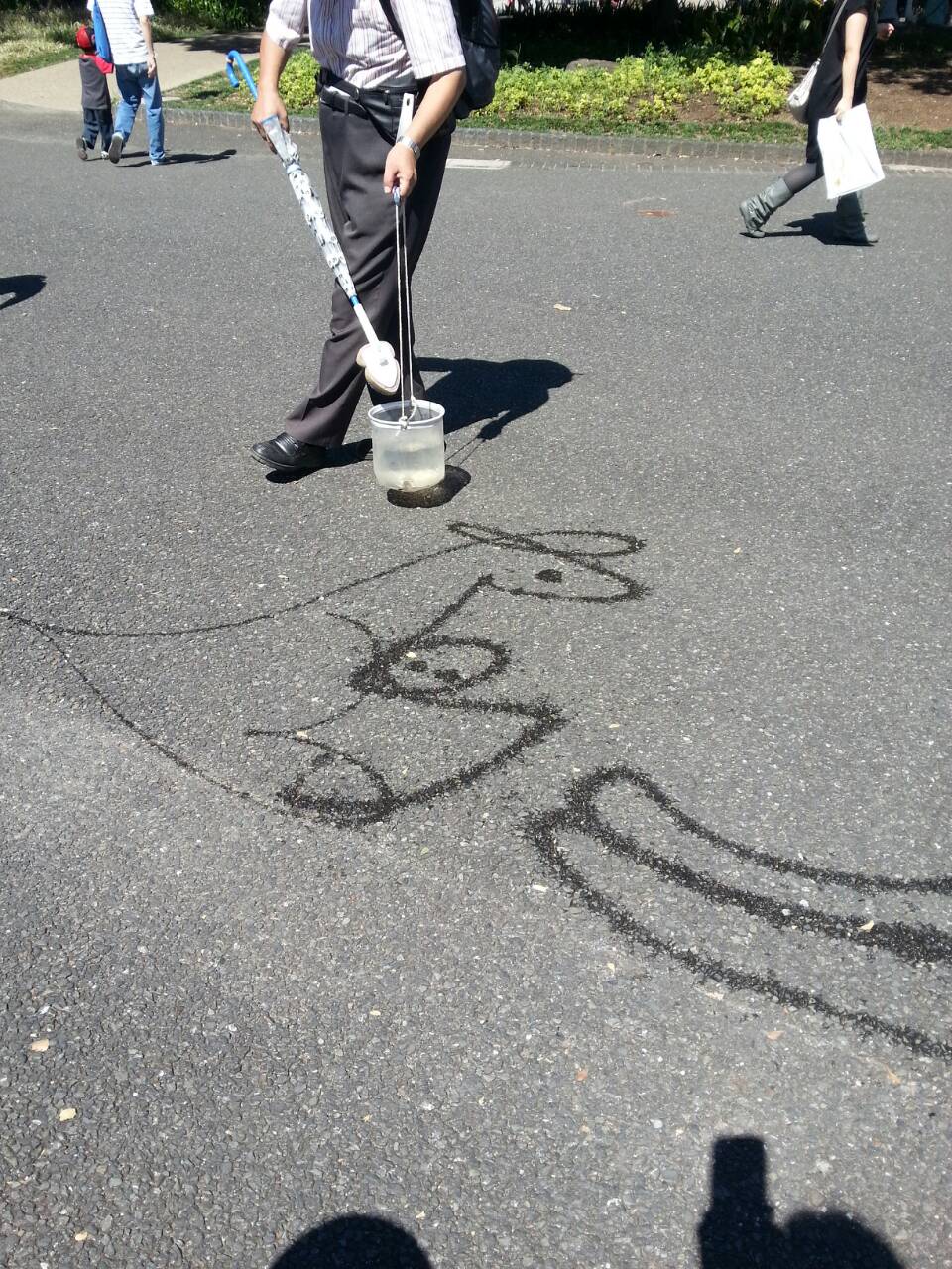 何やら水の入ったバケツを持ってこんなにいい天気なのに、