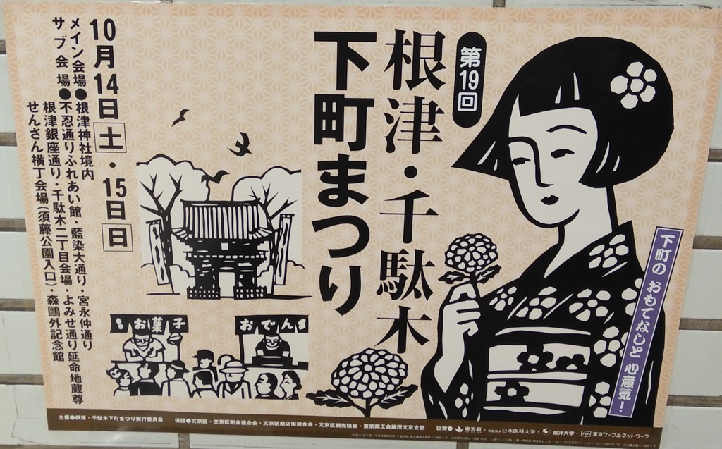 先日、友人と岩本町~秋葉原~湯島~根津と歩いて根津駅に辿り着いた時、上記のポスターを発見しました。