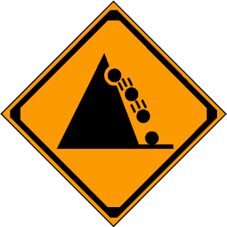 このサインの正しい意味は、落ちてくる石に注意ということだそうです。