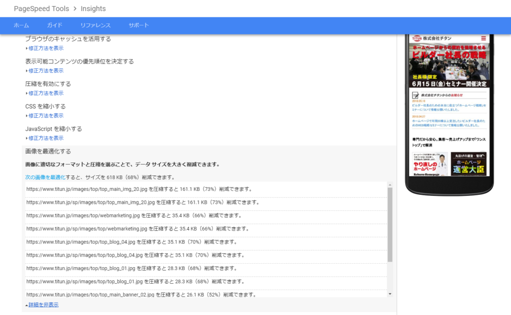 「PageSpeed Insights」これでホームページの表示速度を100点満点で採点してくれます。