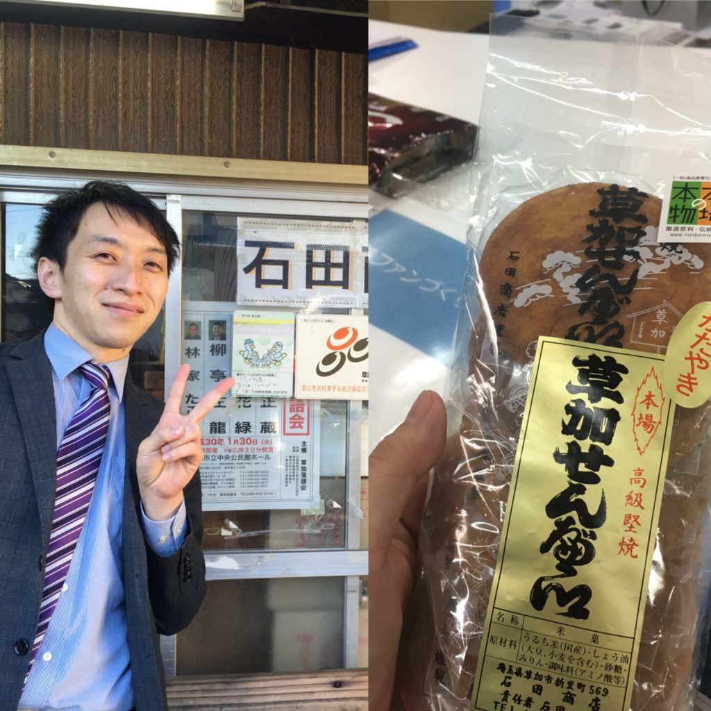 こないだお客様からもらった草加せんべい持ち込んで行ってやろう…!!(笑)