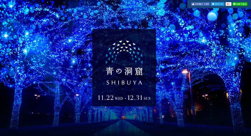 代々木公園ケヤキ並木から渋谷公園通りまでの全長約800mをライトアップし、青一色の光で表現された壮麗な景色が楽しめます。