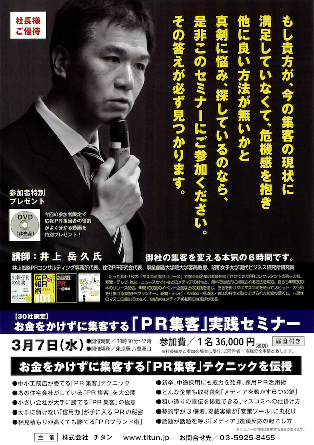 チタンでは!「PR集客」実践セミナーを行いますよ!