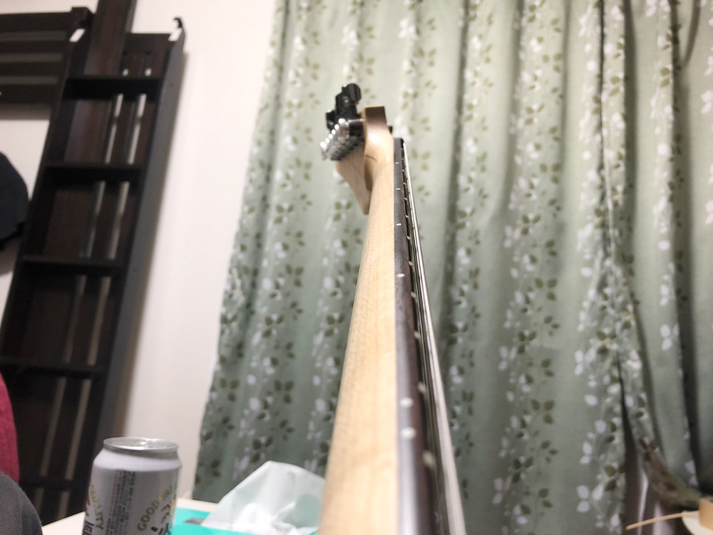 これにより、手の小さい人でもハイフレットまでスムーズに指を動かす事が出来ます。