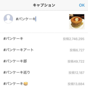 「#パンケーキ」では、横に書かれている「投稿2,746,295」が、これまで投稿された数となり、どのくらいの人に興味を持たれているのかを知る一つの指標になります。