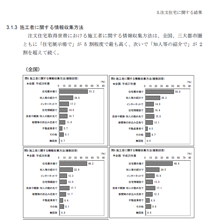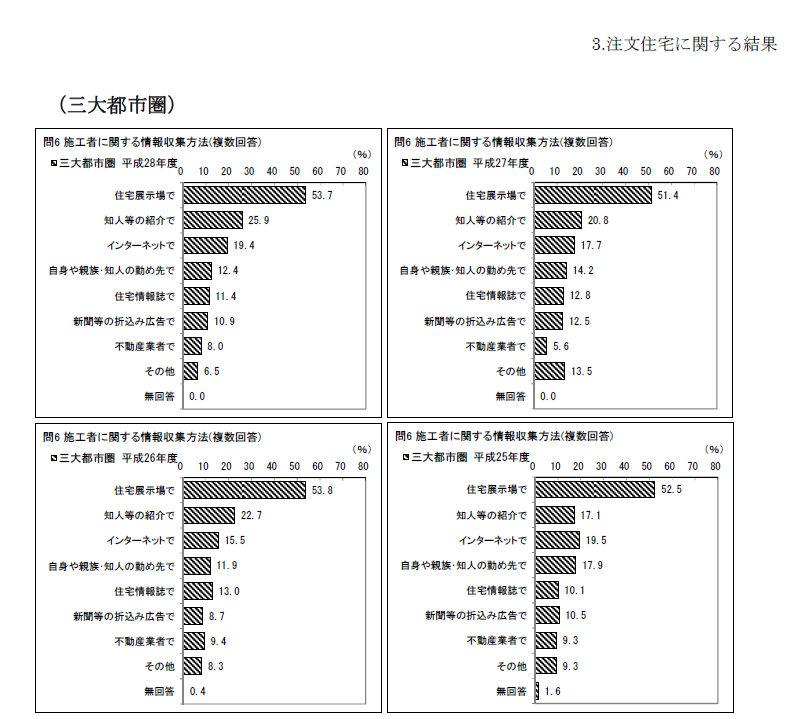 この国土交通省の住宅市場動向調査では、注文住宅の他にも分譲住宅・分譲マンションも同様の調査がされており、