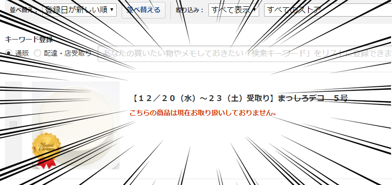 なんと不運にも在庫切れ。その後日付を変更してみてもやはり在庫切れ。