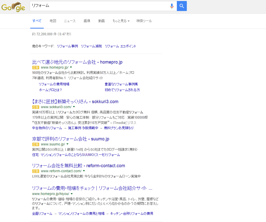 検索エンジンを利用する場合、例えば